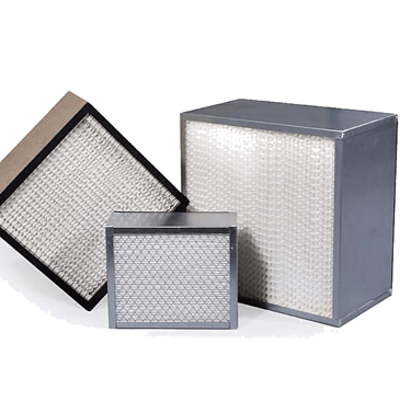 Efficiency: 99.97% to 99.995% (≥ 0.3 micron) Media: Micro glass fibre paper (mini-pleated) Frame: Aluminium / SS 304 Recommended For: OTs, ICUs, clean rooms Options: Terminal HEPA boxes, gel-seal type