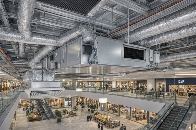 AHUs, FCUs, ductable ACs Kitchen exhaust units & ecology units Chiller lines and ventilation