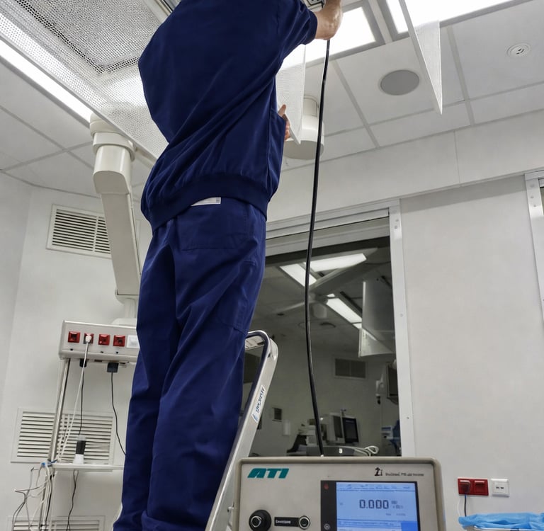 NABH & ISO standard testing Air velocity & ACPH HEPA integrity test Differential pressure measurement Noise, lux, and RH testing