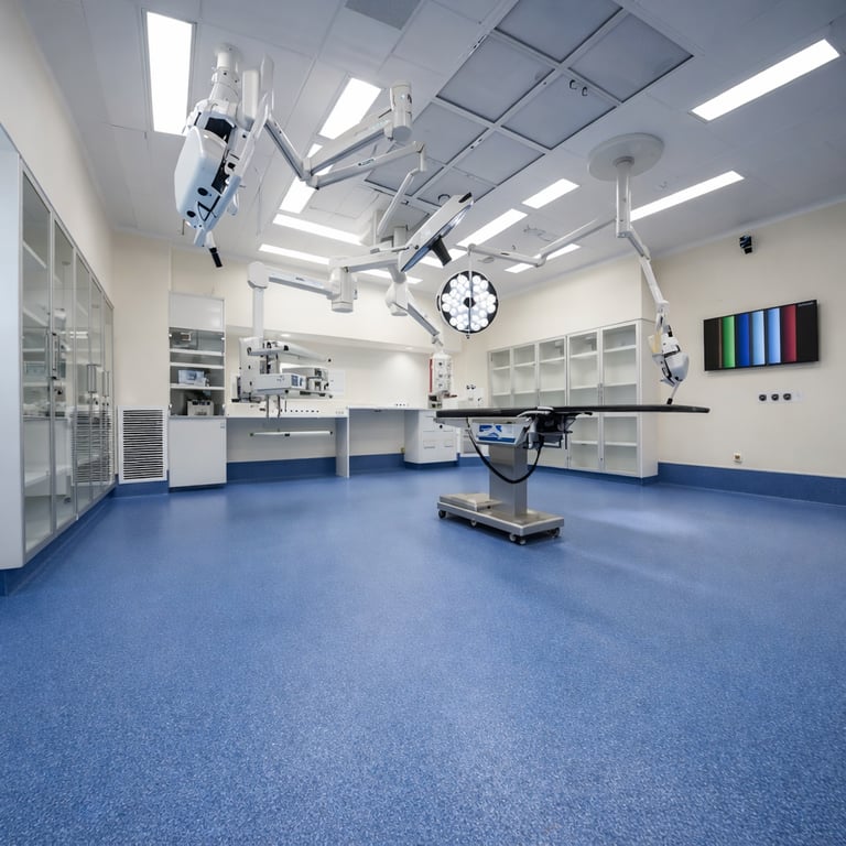Hospital-grade antibacterial vinyl Commercial heavy-duty vinyl Cove-forming installation